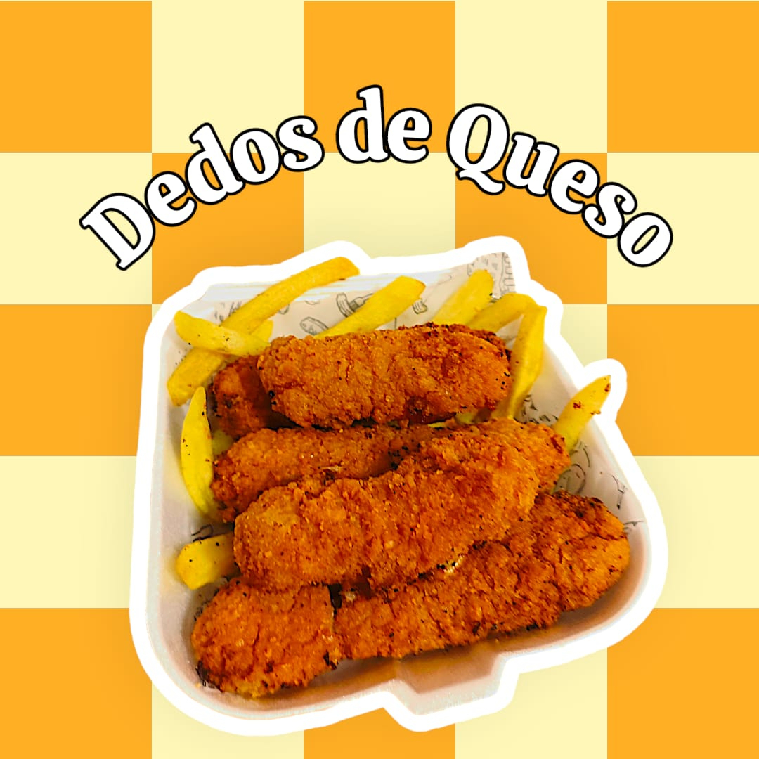 Tiras crujientes con queso derretido dentro acompañadas de una cama de papas a la francesa, complementadas con 3 aderezos de su elección.