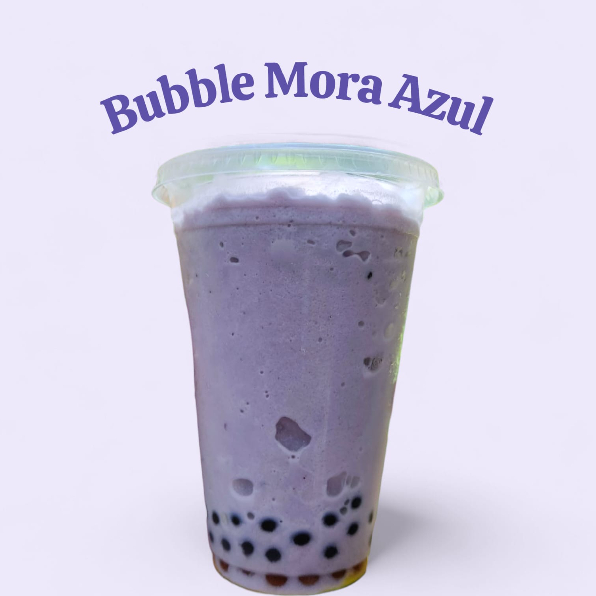 Bebida frappeada, cremosa y dulce sabor mora azul, elaborada con leche deslactosada y toppings de su elección