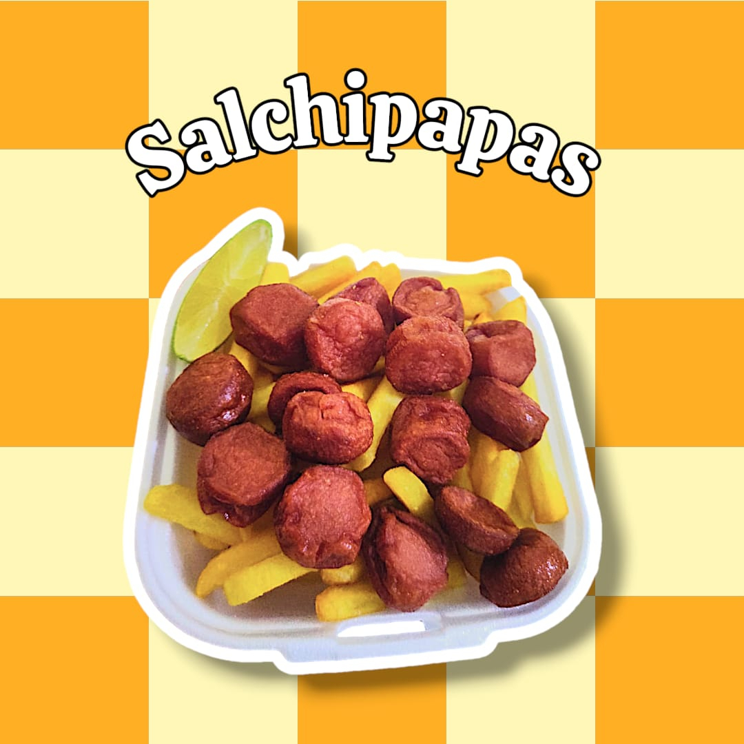 Bandeja de bocadillos con 4 porciones Mixeadas de Papas a la Francesa, Salchipulpos, Nuggets y Dedos de queso, complementados con 4 aderezos de su elección.