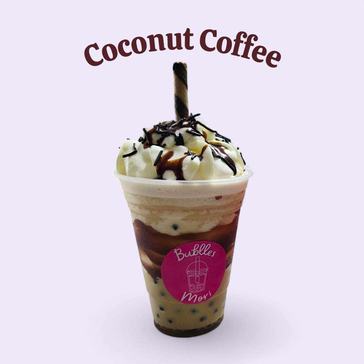 Bebida frappeada, cremosa y dulce sabor coco, elaborada con leche deslactosada y toppings de su elección
