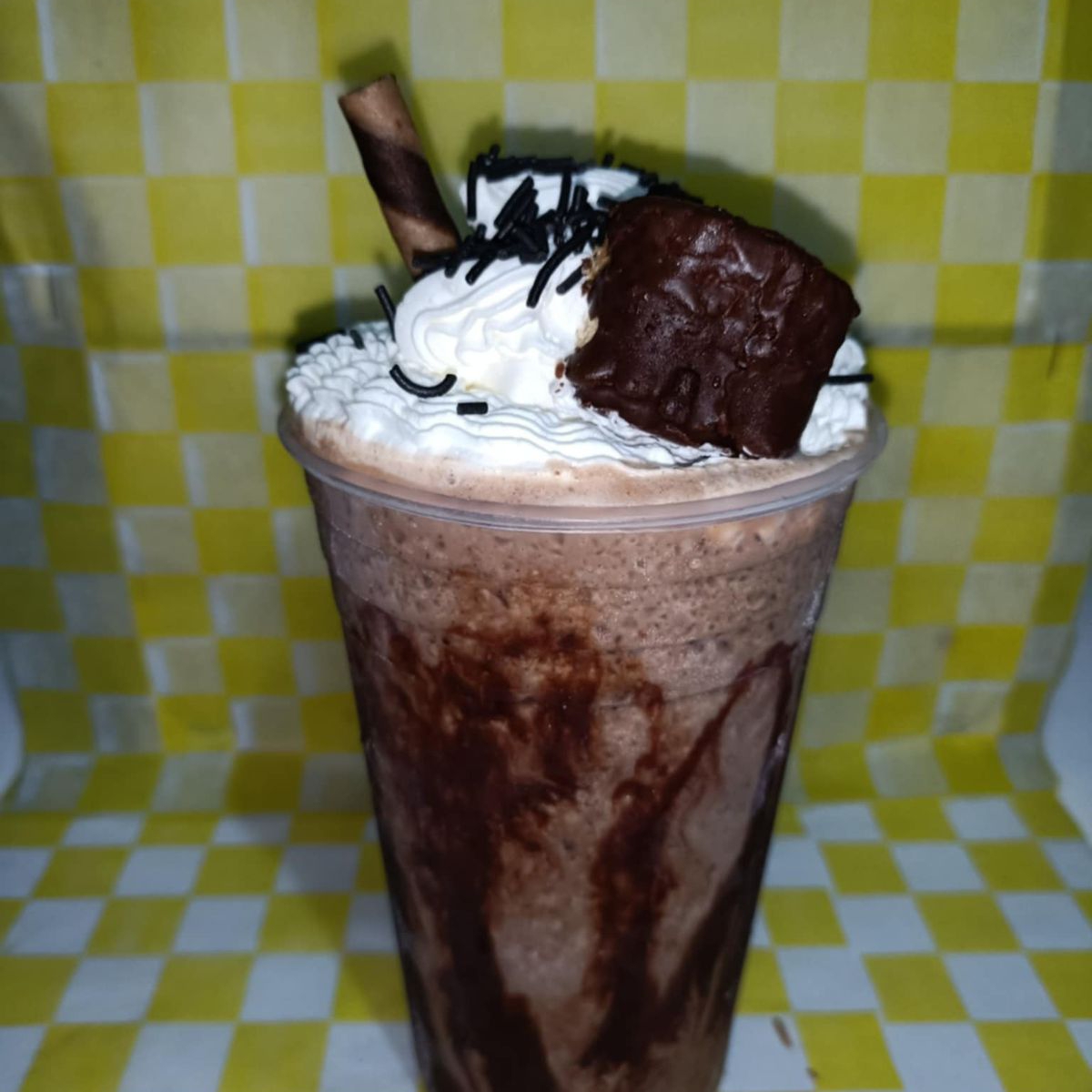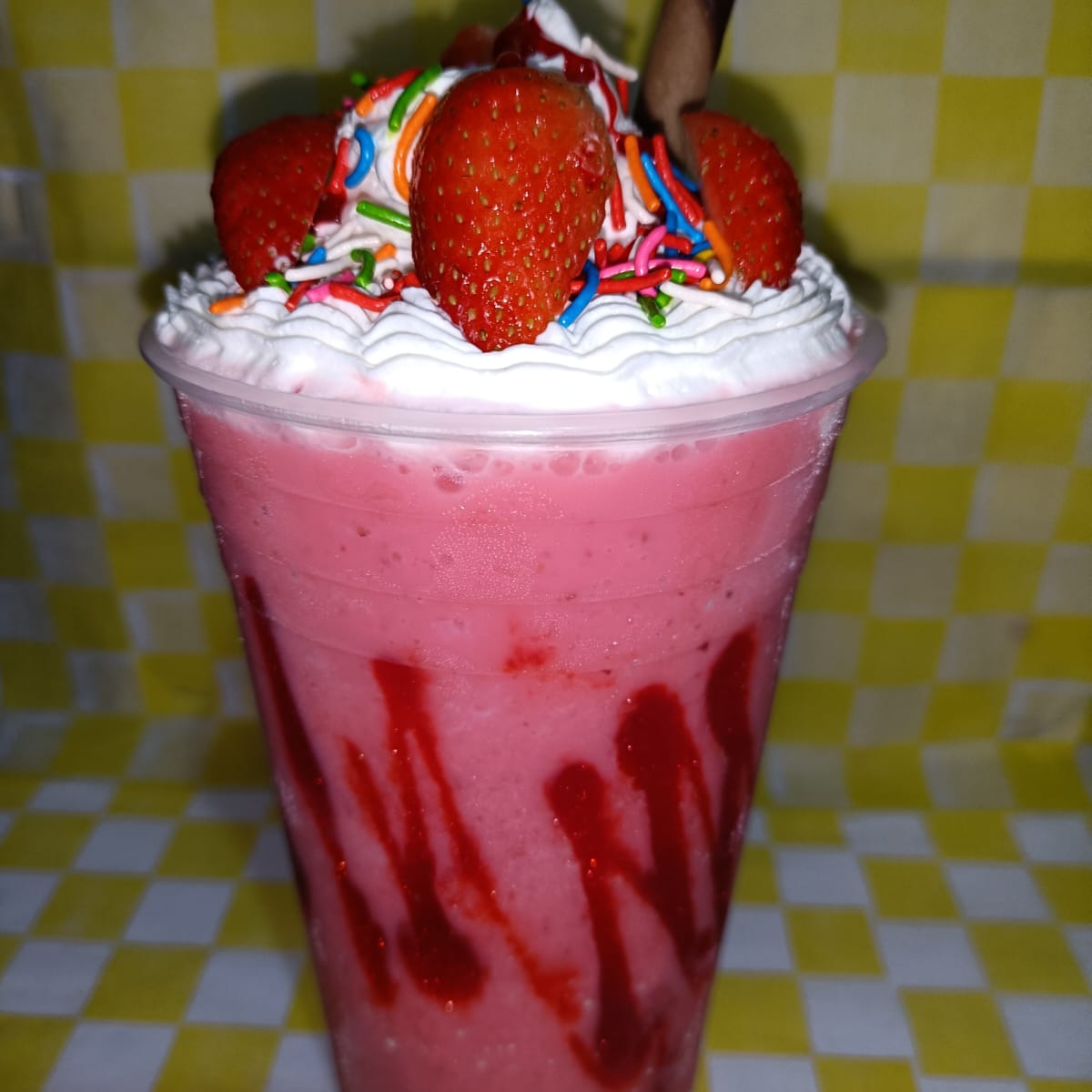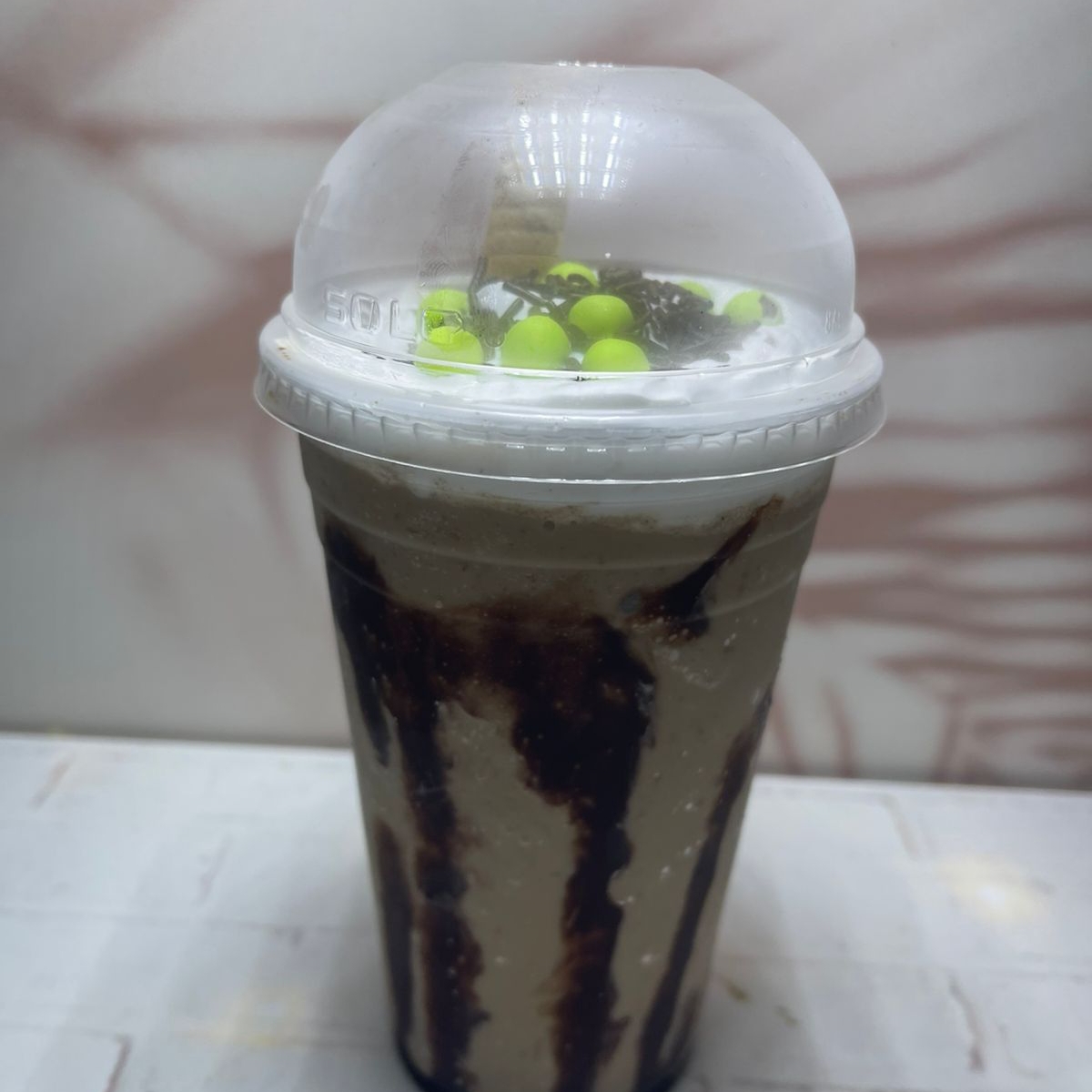 16 oz de frappe, leche deslactosada, cafe, hielo, crema batida y oreo.