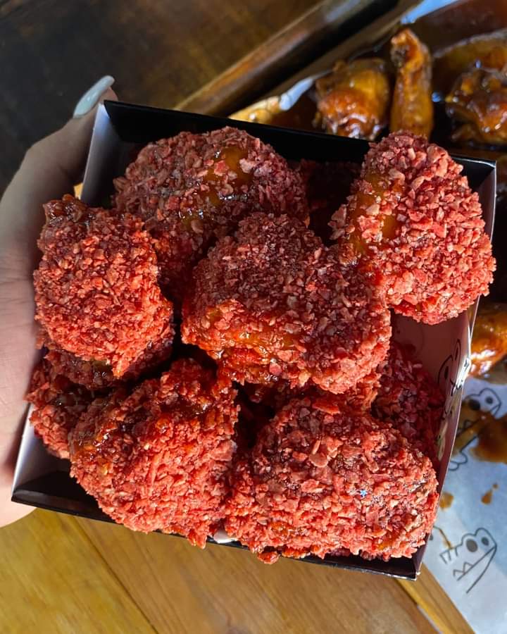 Orden de 10 boneless, 400 g marinados en salsa gobernador y empanizados a base de harina con un toque de pimienta, bañados en salsa red spicy sauce.