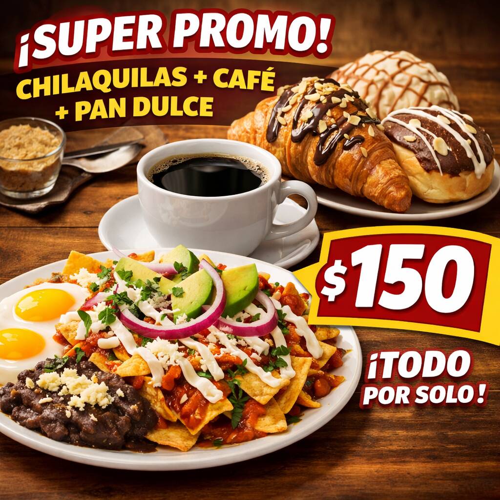 Pan Dulce*1 + Americano*1 + Chilaquiles Rojos con Huevo*1