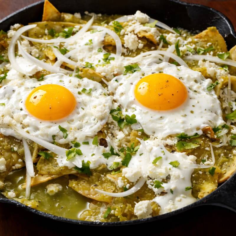 Crujientes totopos bañados en deliciosa salsa verde , acompañados de pollo deshebrado y huevos estrellados al momento. Servidos con crema, queso fresco y un toque de cebolla morada para resaltar todos los sabores. Un desayuno completo, casero y lleno de tradición mexicana. 🌿🍳