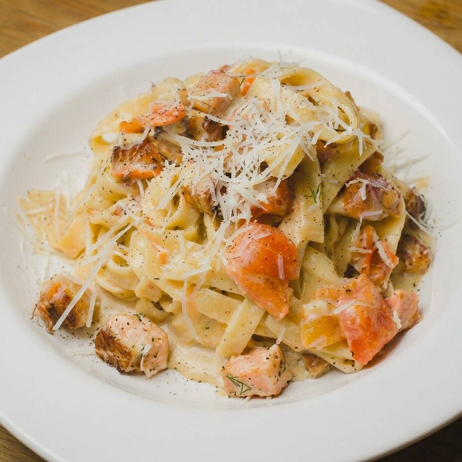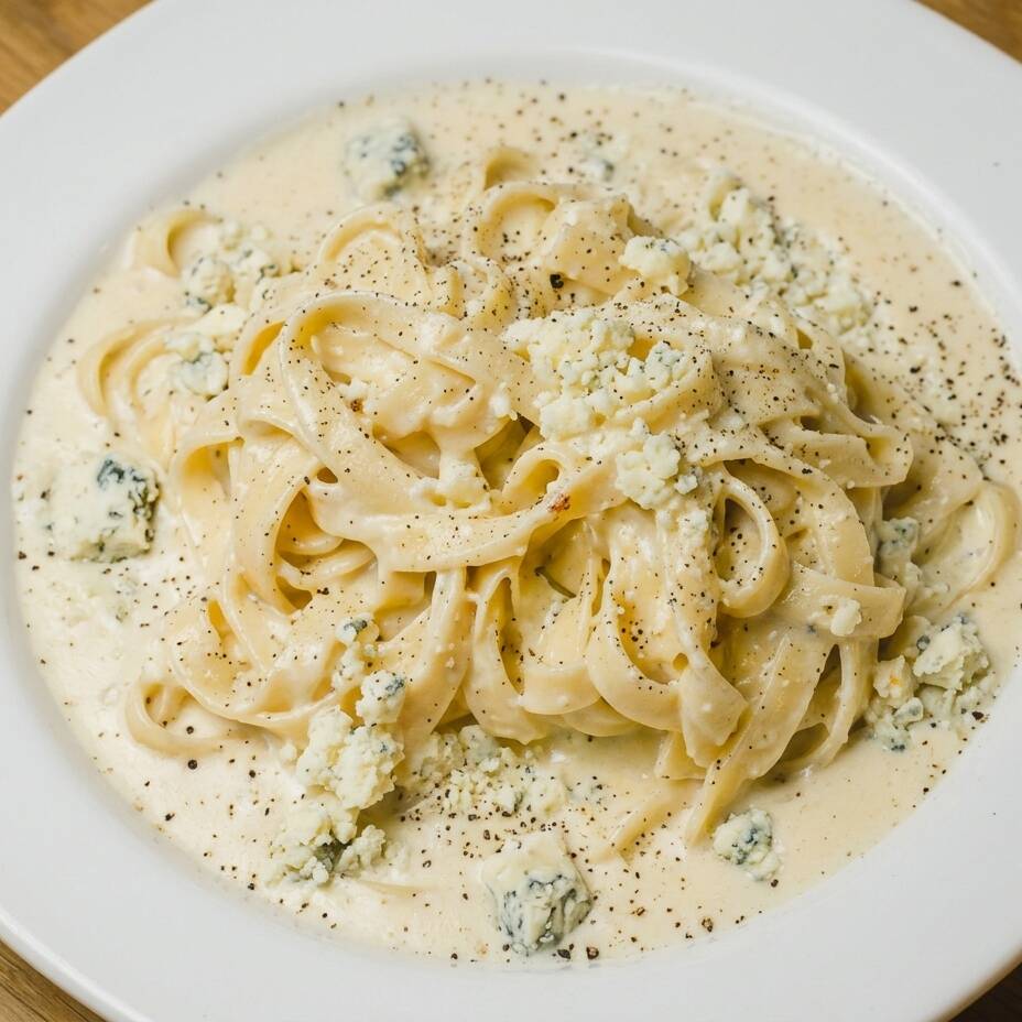 Pasta fetuccini caseros con salsa de mozzarella, gorgonzola, ricotta y parmesano.