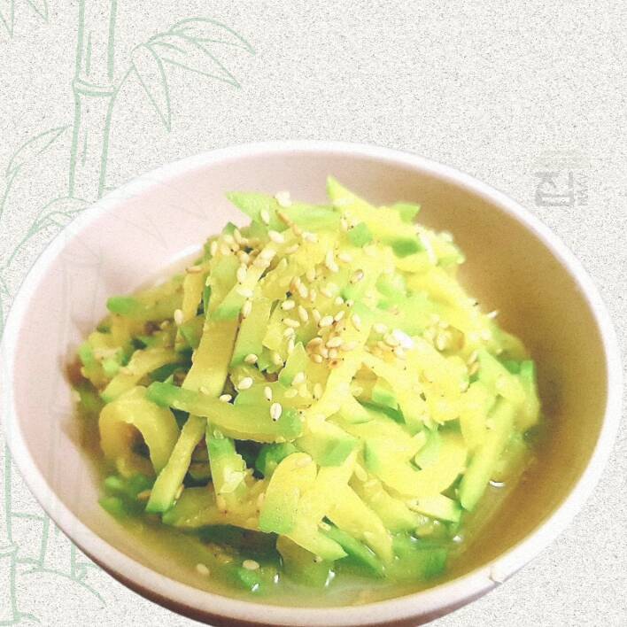 Calabacita tierna, salteadas brevemente a fuego alto para conservar su frescura y color vibrante. Marinadas en una emulsión ligera de aceite de sésamo.
