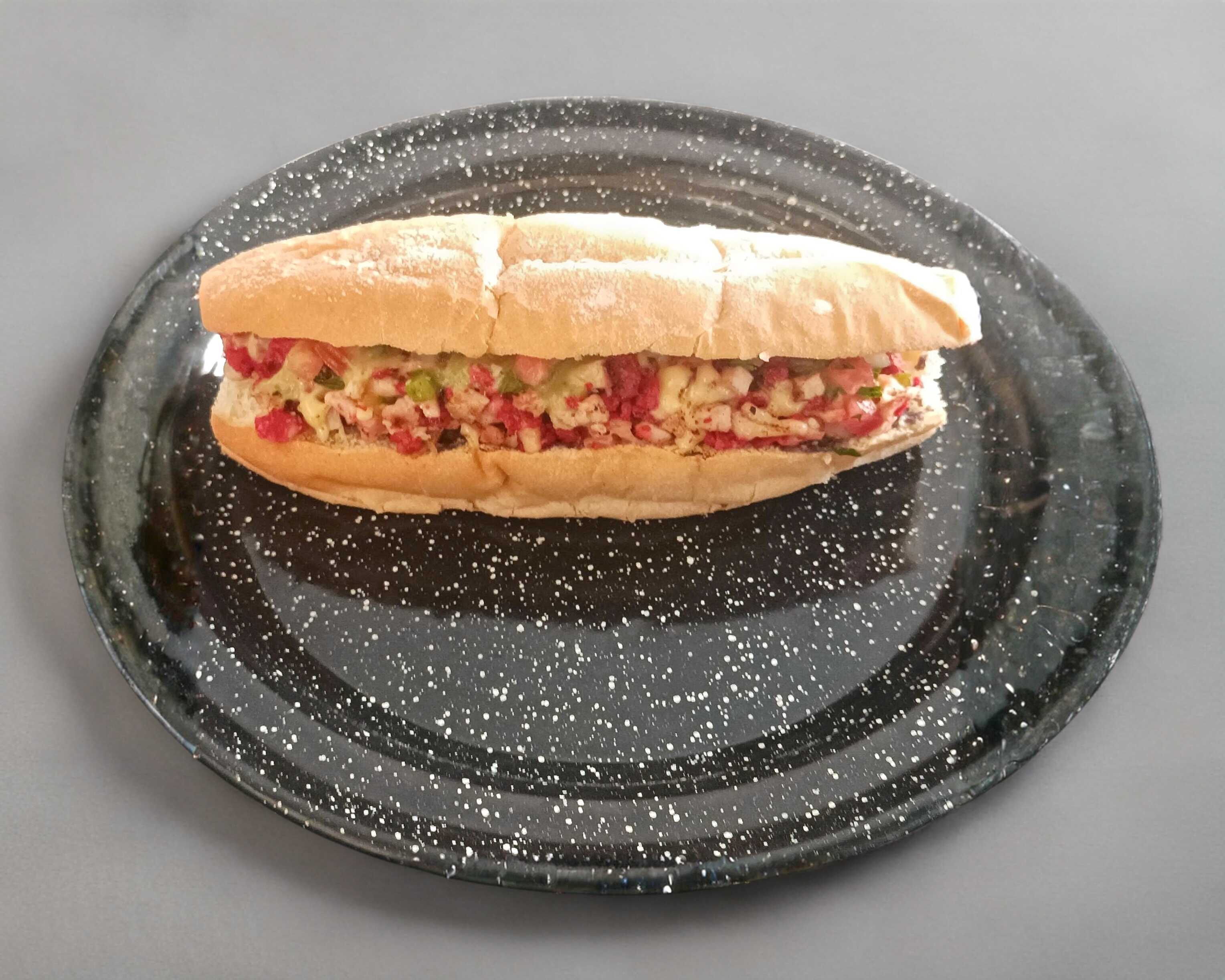 Torta de carne asada con jamón, queso manchego, longaniza, cebollla asada y frijol.