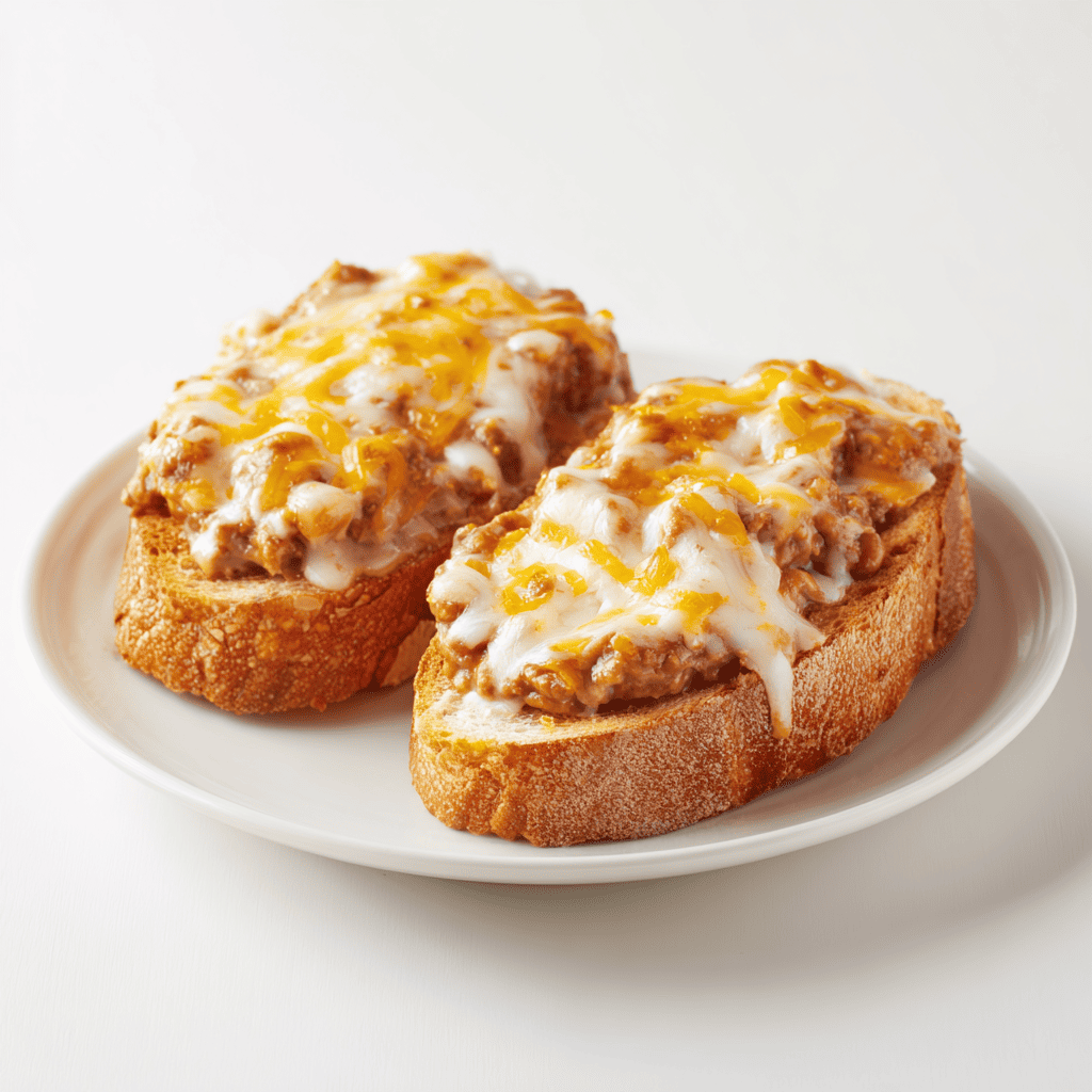 Pan de hogaza, frijol y queso gratinado. Acompañado con pico de gallo y crema.