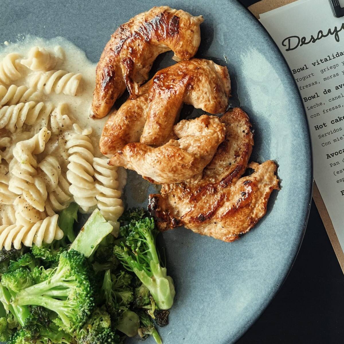 Pechuga de pollo cocinada a la plancha. Acompañada de tortillas y 2 guarniciones a elegir.