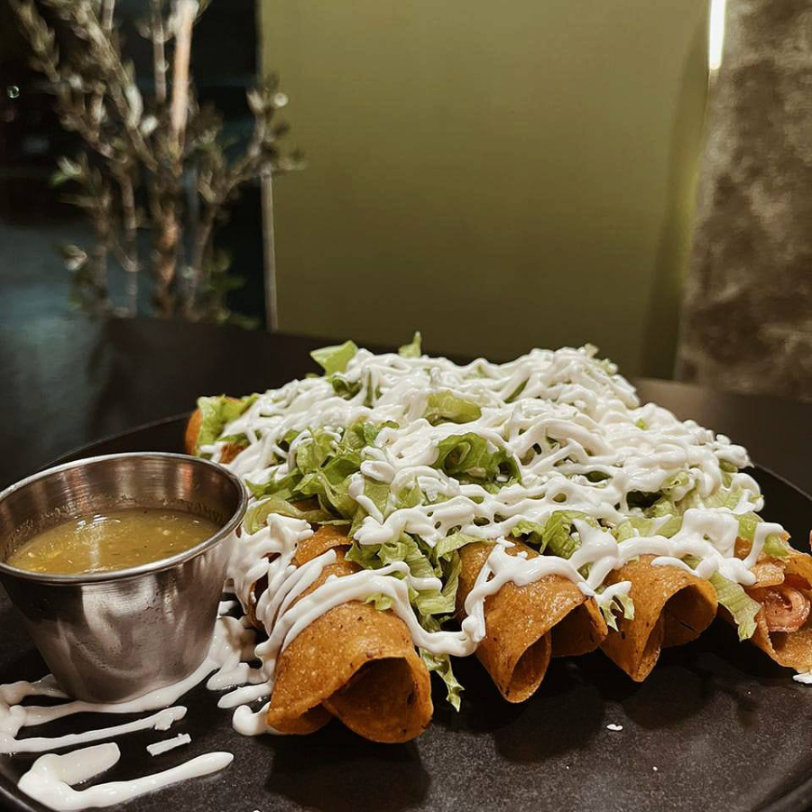 Con lechuga, crema y salsa verde.
