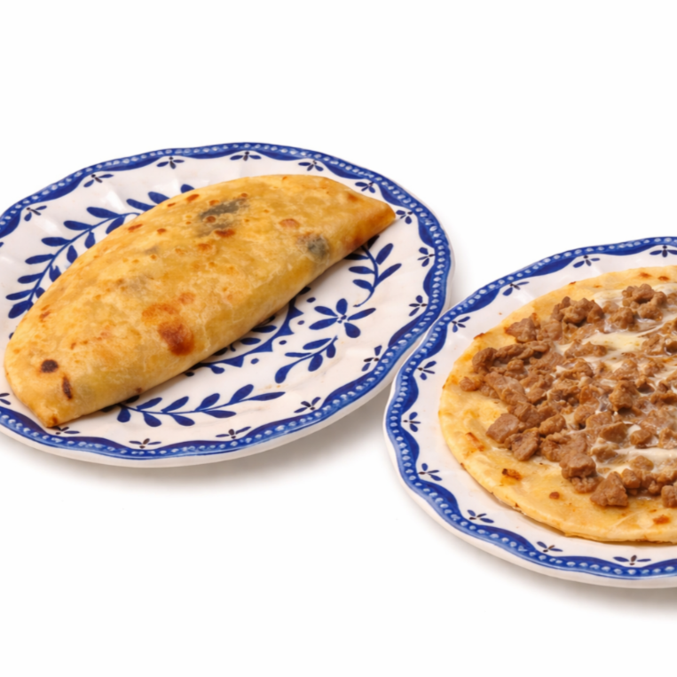 Doble tortilla de sonora de 20cm con abundante queso mozarella y carne de diezmillo. Acompañado de salsas caseras