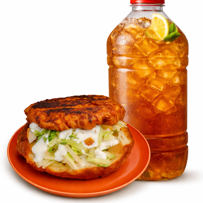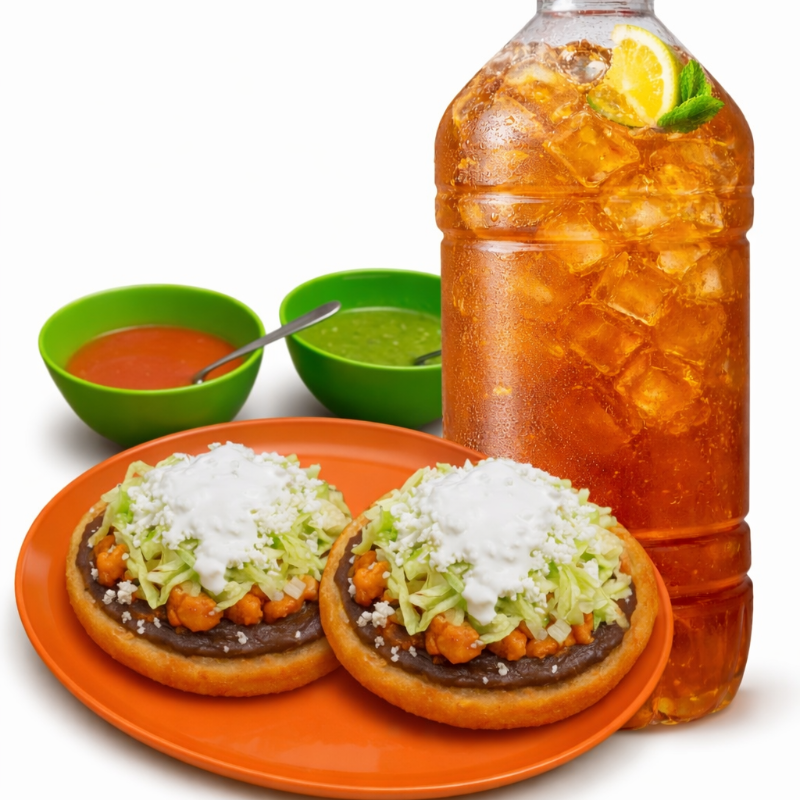 Chicharrón prensado, lechuga, cebolla, crema, queso y guiso a escojer