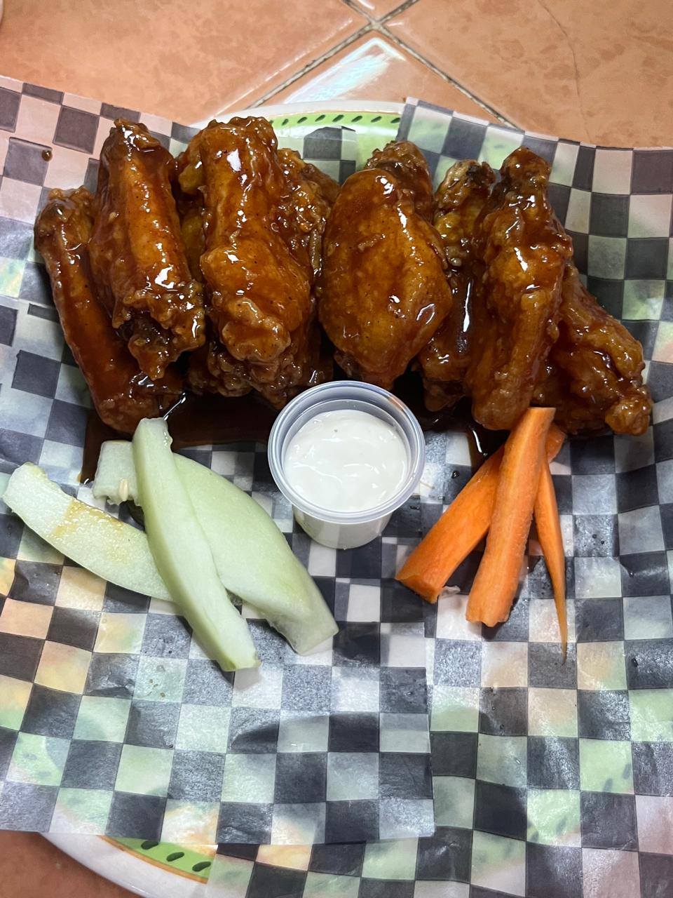 10 Piezas salsa de su elección: búfalo, BBQ, cajún o mango habanero.