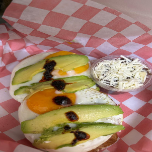 Pan de masa madre con frijol, queso gouda, chorizo, aguacate y nuestra salsa machamorita.