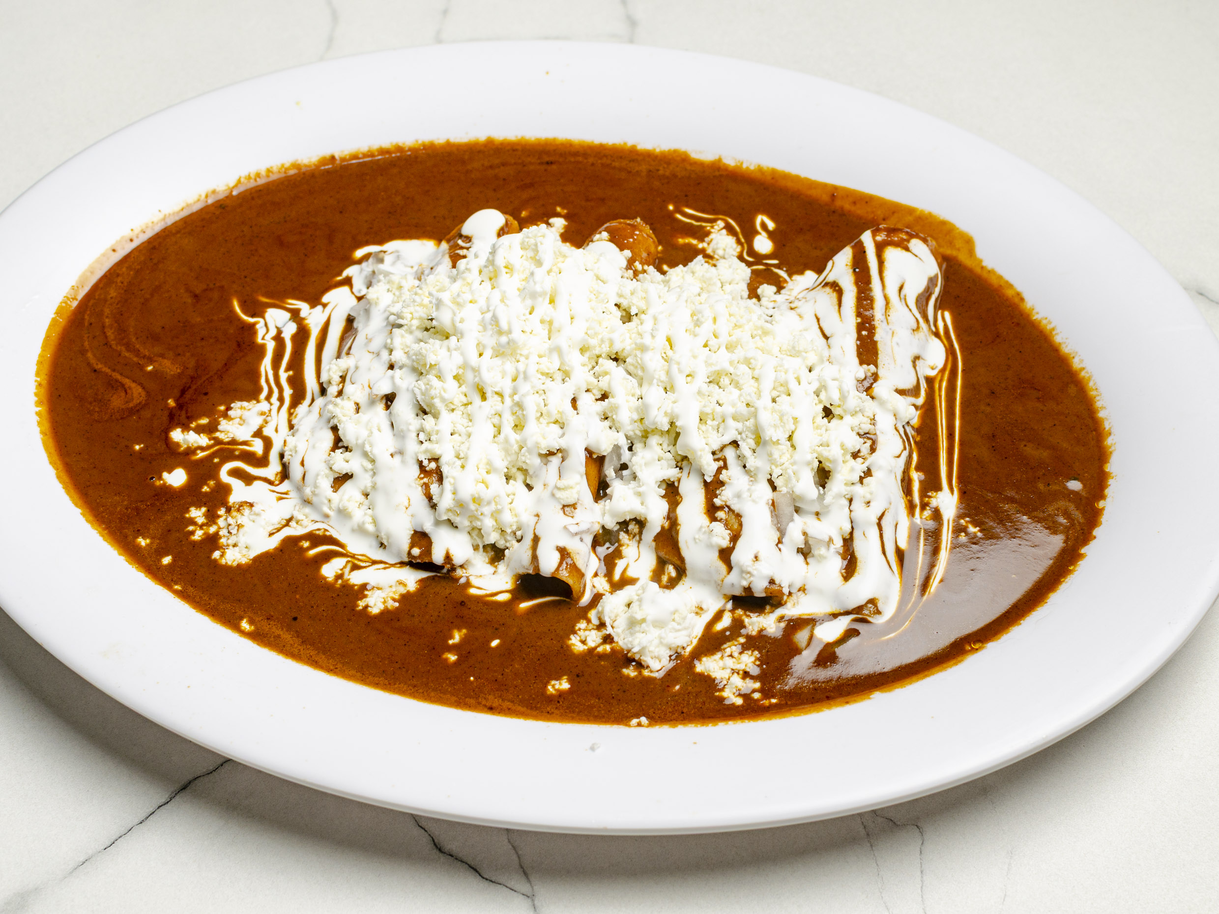 4 piezas. Preparadas con chilorio (60g), pollo, crema, queso de la casa y cebolla.