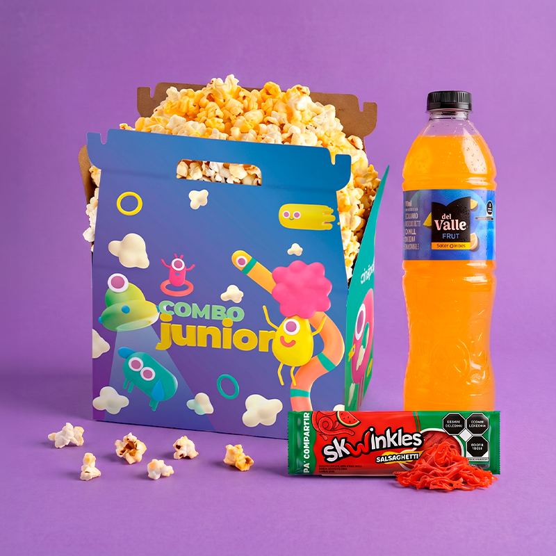 Combo Junior Cinépolis® incluye palomitas Junior + 1 Bebida de la familia Coca-Cola® + Skwinkles® Para Compartir.