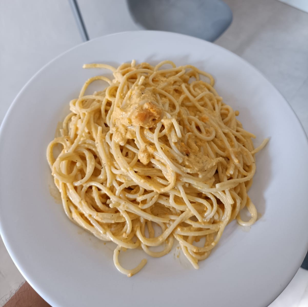 Espagueti con salsa blanca al pimiento 250 g.