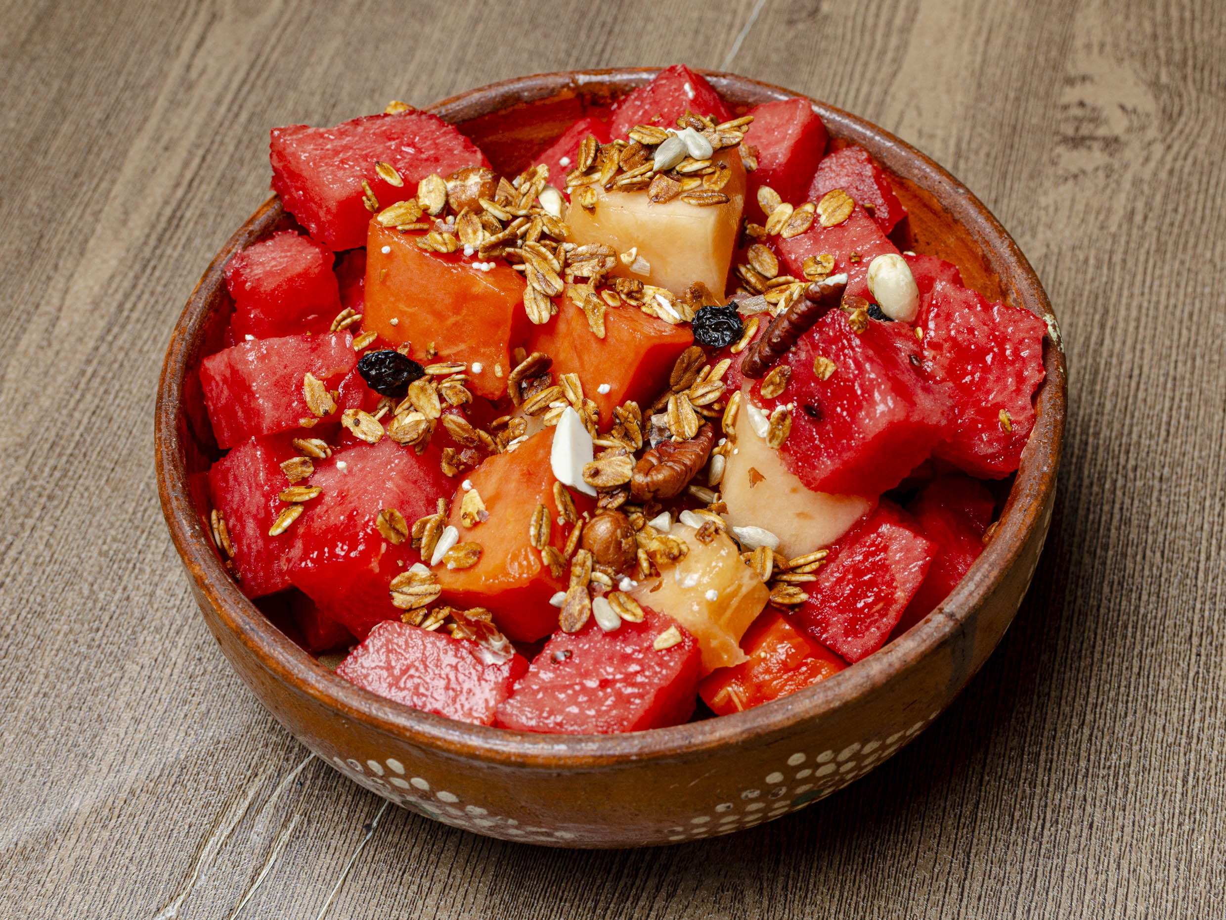 Mezcla de frutas (sandia, melón y papaya) 370gr aprox. pidela con limón sal o con granola y miel
