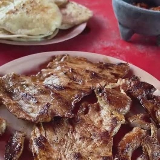 Acompañado de Arroz, Frijol, Repollo, Salsa y Tortillas
