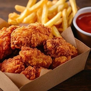 4 pzs pollo cruji con papas 350gr. Y ketchup