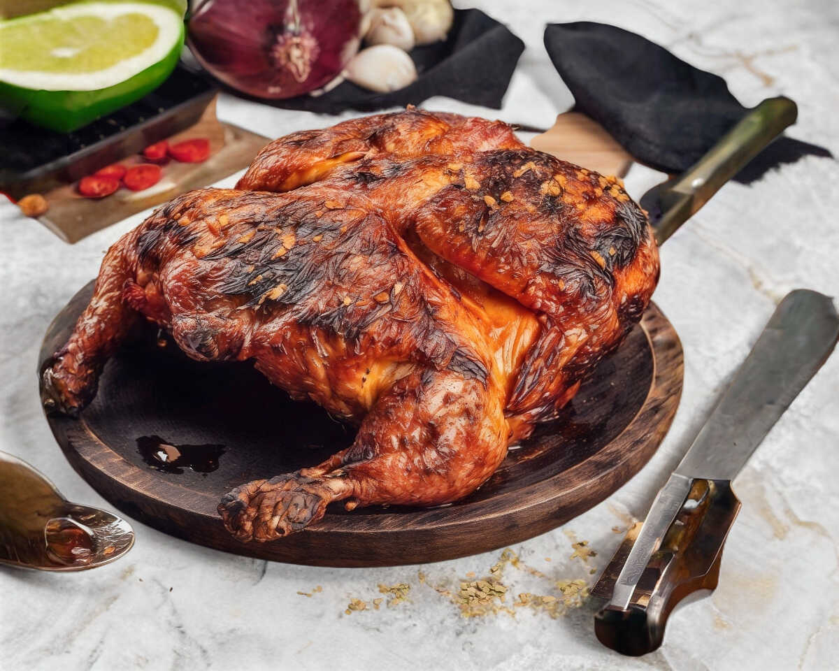 2 pzs Pollo Al Carbón acompañado con Arroz, Frijol, Repollo y Salsa