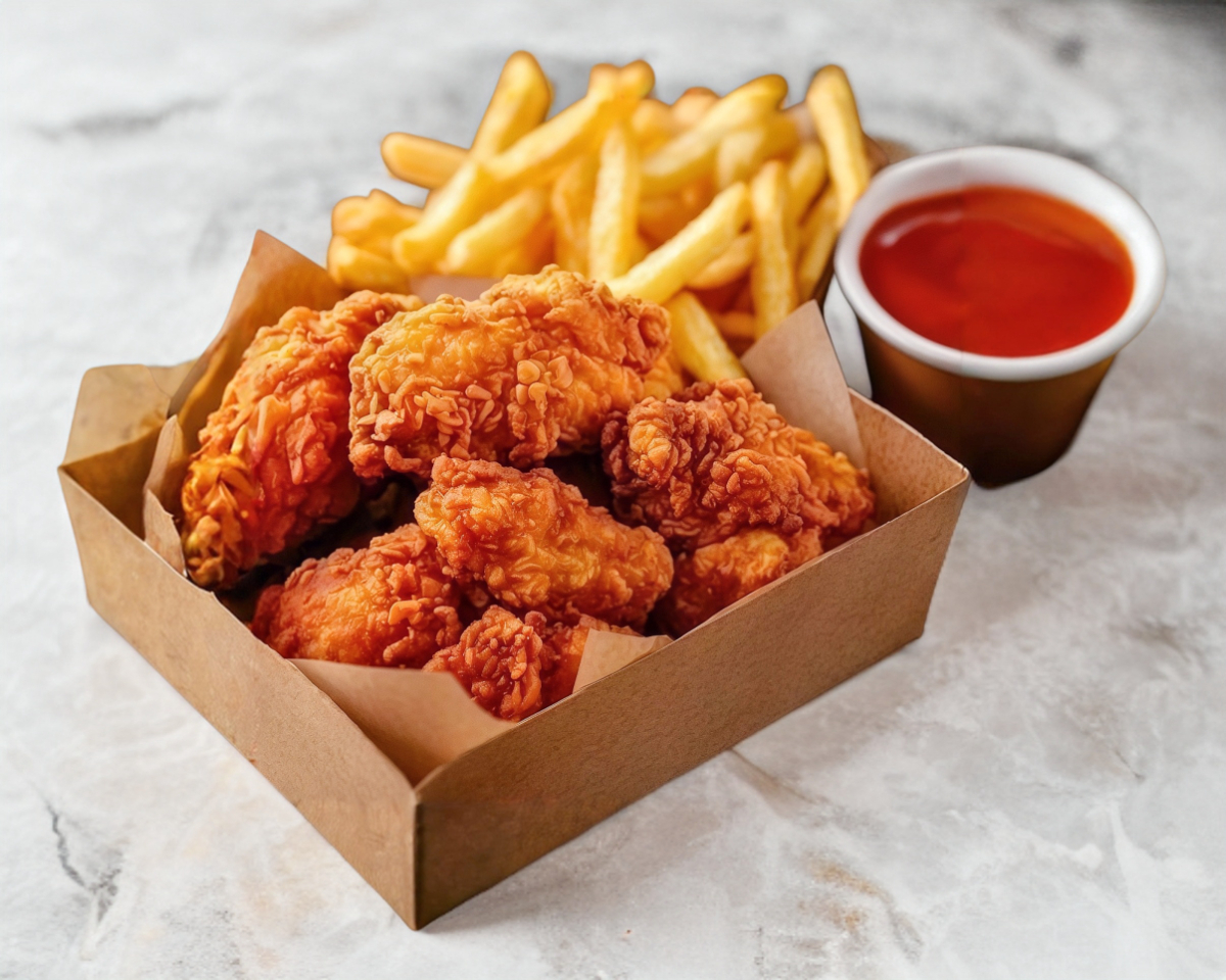 4 pzs pollo Cruji + Papas 450gr y ketchup