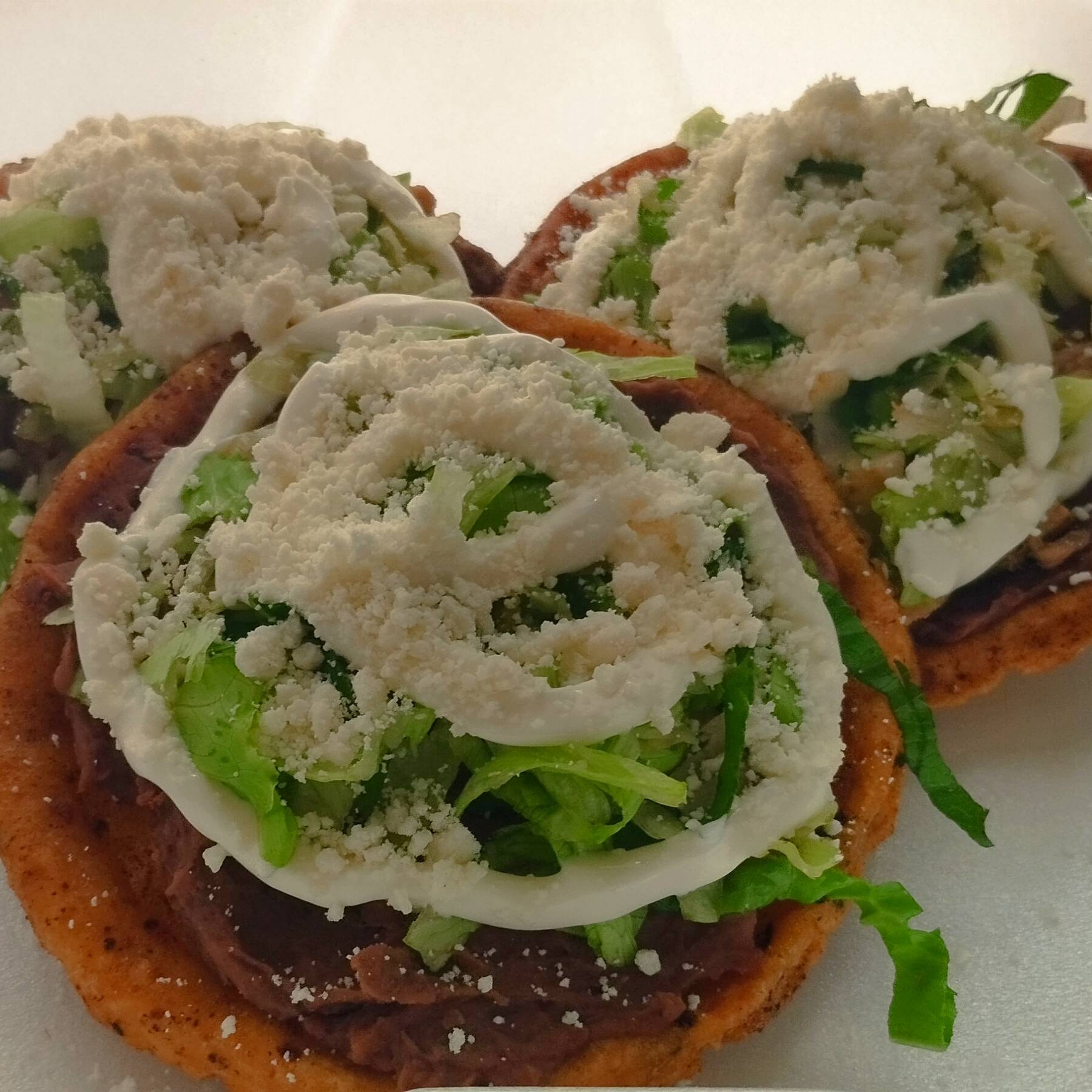 1 Sope con guiso acompañado de, queso, crema y lechuga