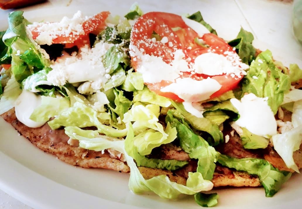 Sope de pollo deshebrado gigante.