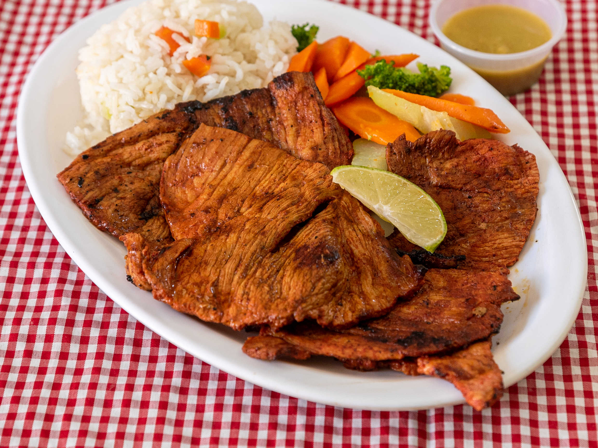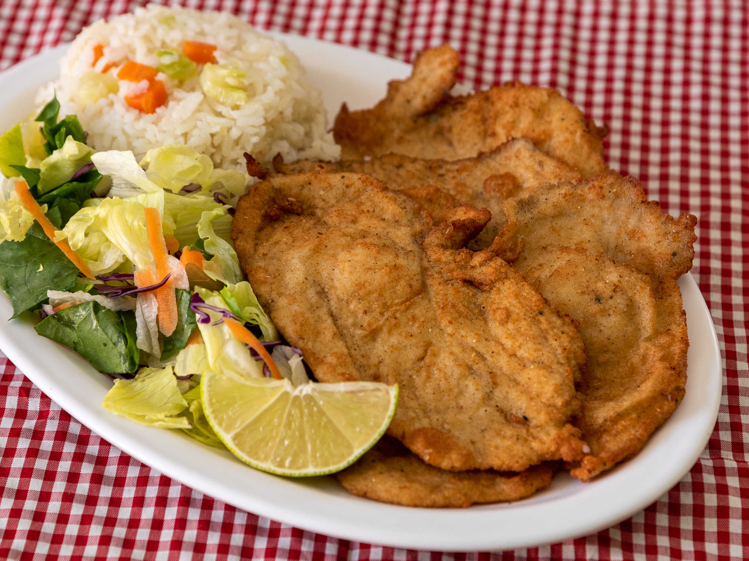 Milanesa de cerdo a elegir, incluye 2 guarniciones y tortillas.