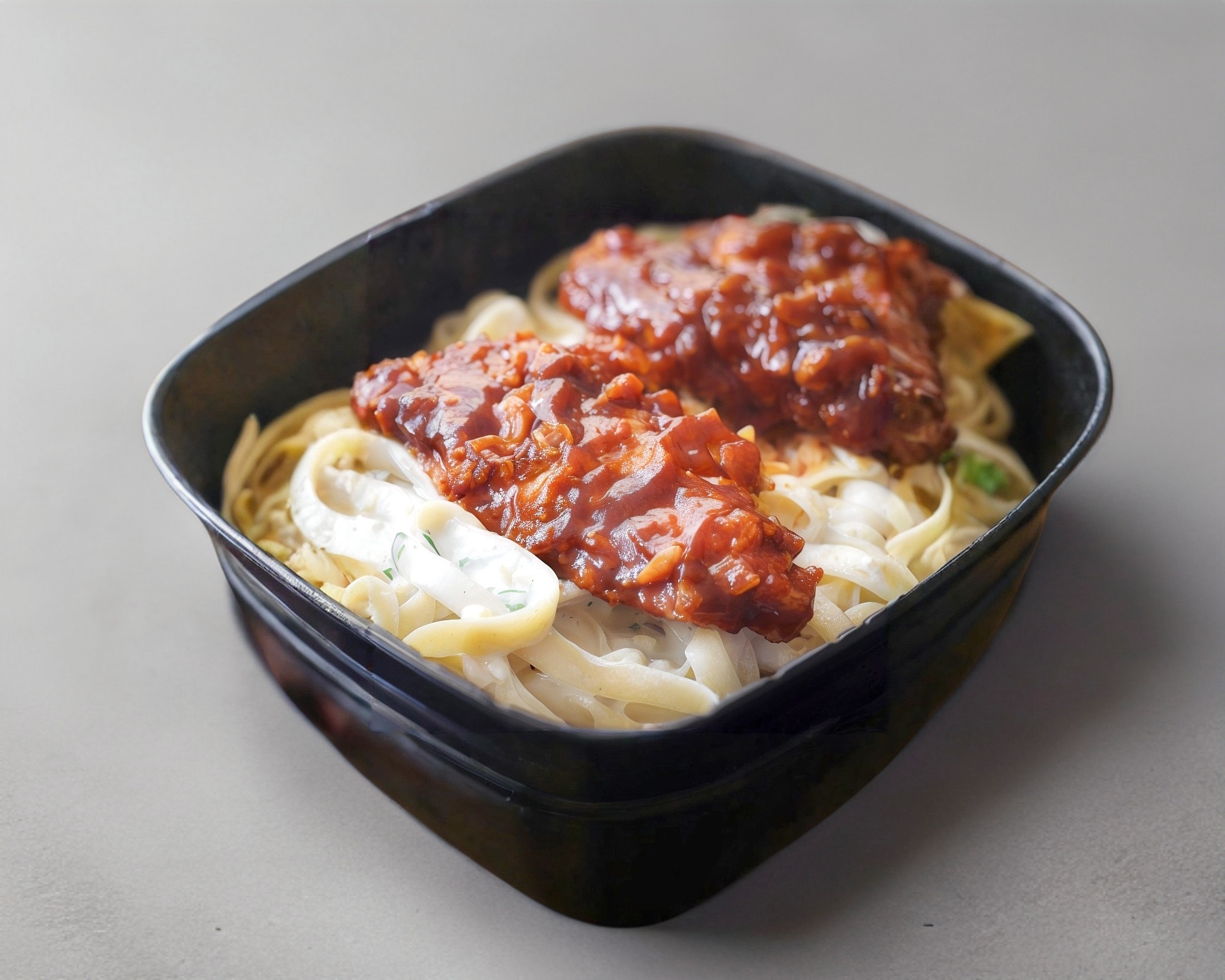 Fetuccini Alfredo con Tiras BBQ