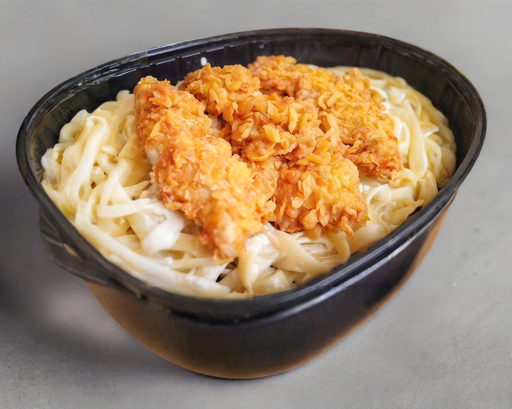 Fetuccini Alfredo con Tiras Crispy