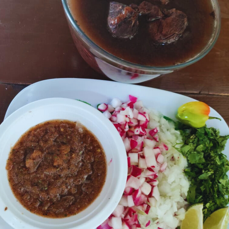 Platillo tradicional yucateco preparado con frijoles negros cocidos lentamente junto con jugosa carne de cerdo. se sirve acompañado de arroz blanco, rábanos, cilantro fresco, cebolla y chiltomate. un sabor casero