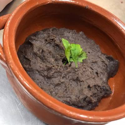 Carne de cazón en capas de tortilla bañado en salsa de tomate, frijol y acompañado de chile habanero.