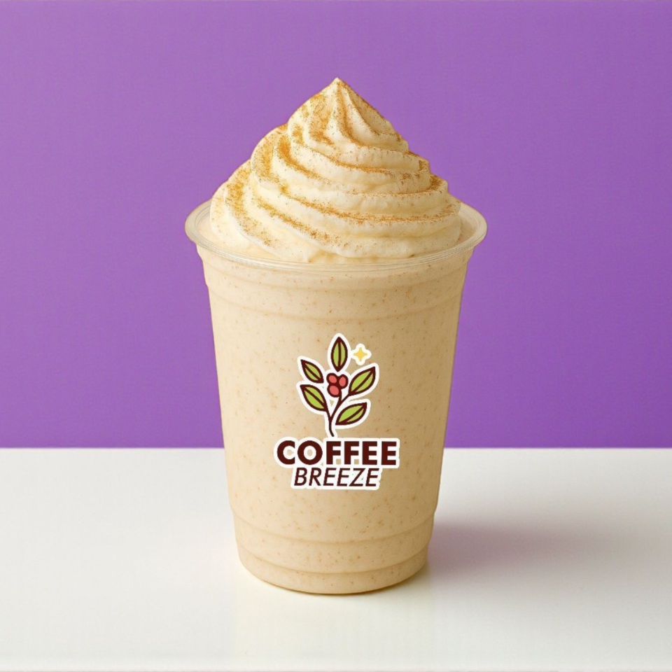 Delicioso frappe sabor Arroz con leche con un toque de canela y crema batida.