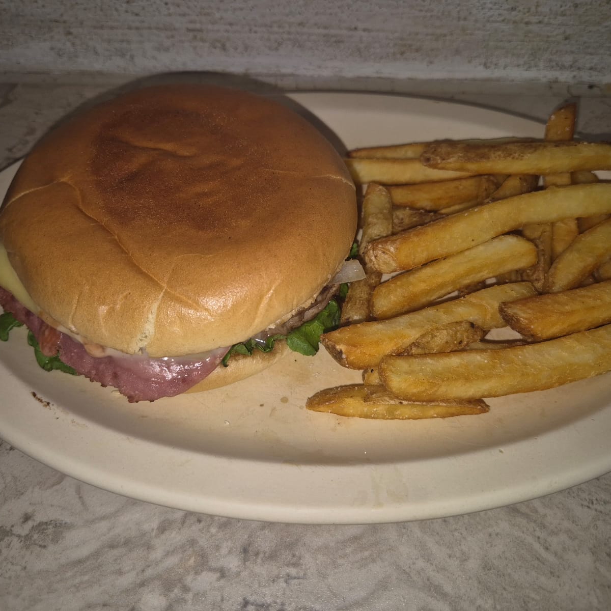 Con vegetales y papas a la francesa