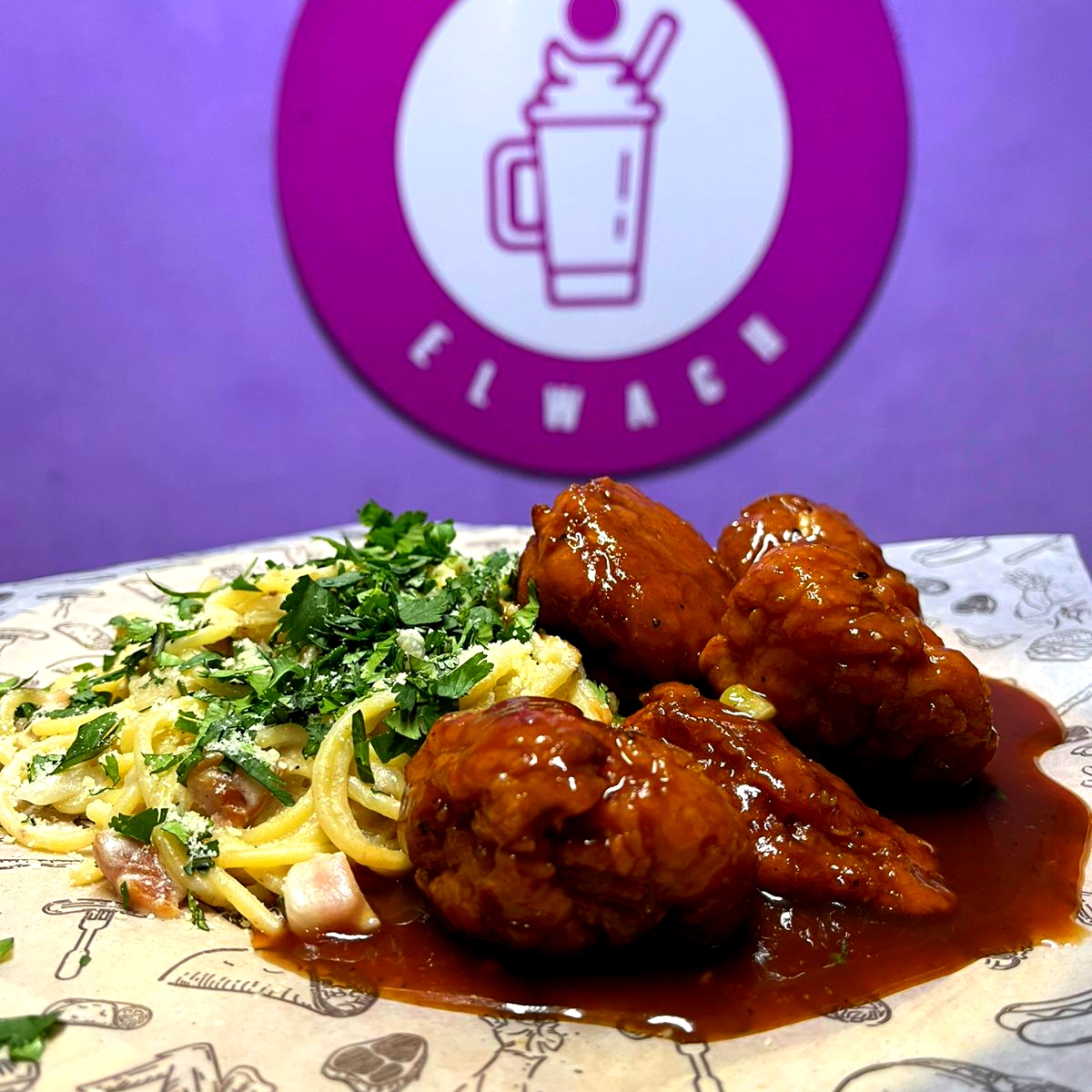 PASTA CARBONADA CON 6 PIEZAS DE BONELES BBQ