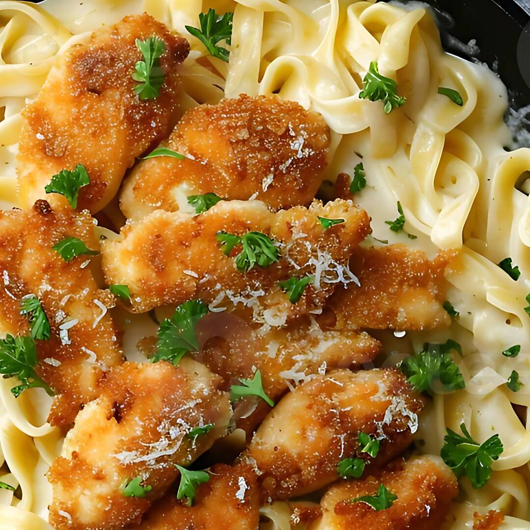 Pasta Alfredo Con Pechuga Cruji