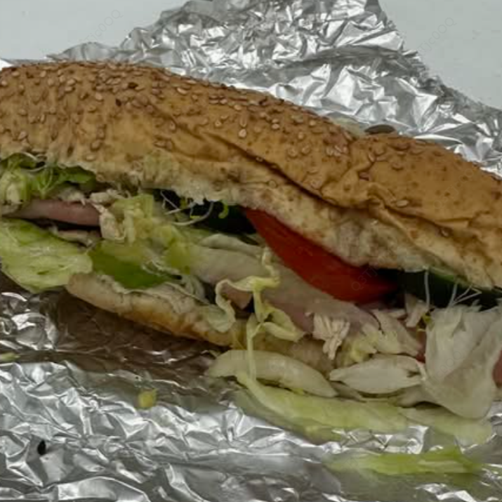 Jamón de pavo, queso manchego, lechuga romana, pepino y tomate.
