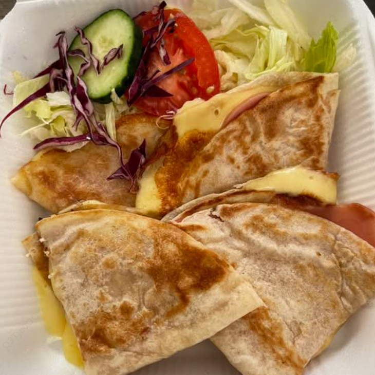 Tortillas de harina rellenas de jamón y queso.