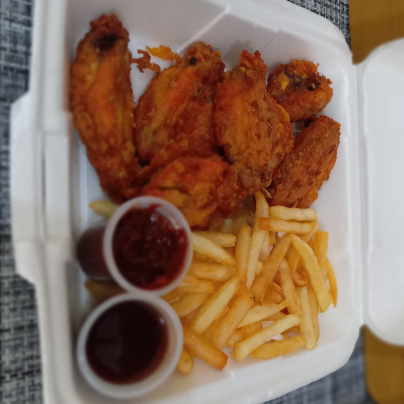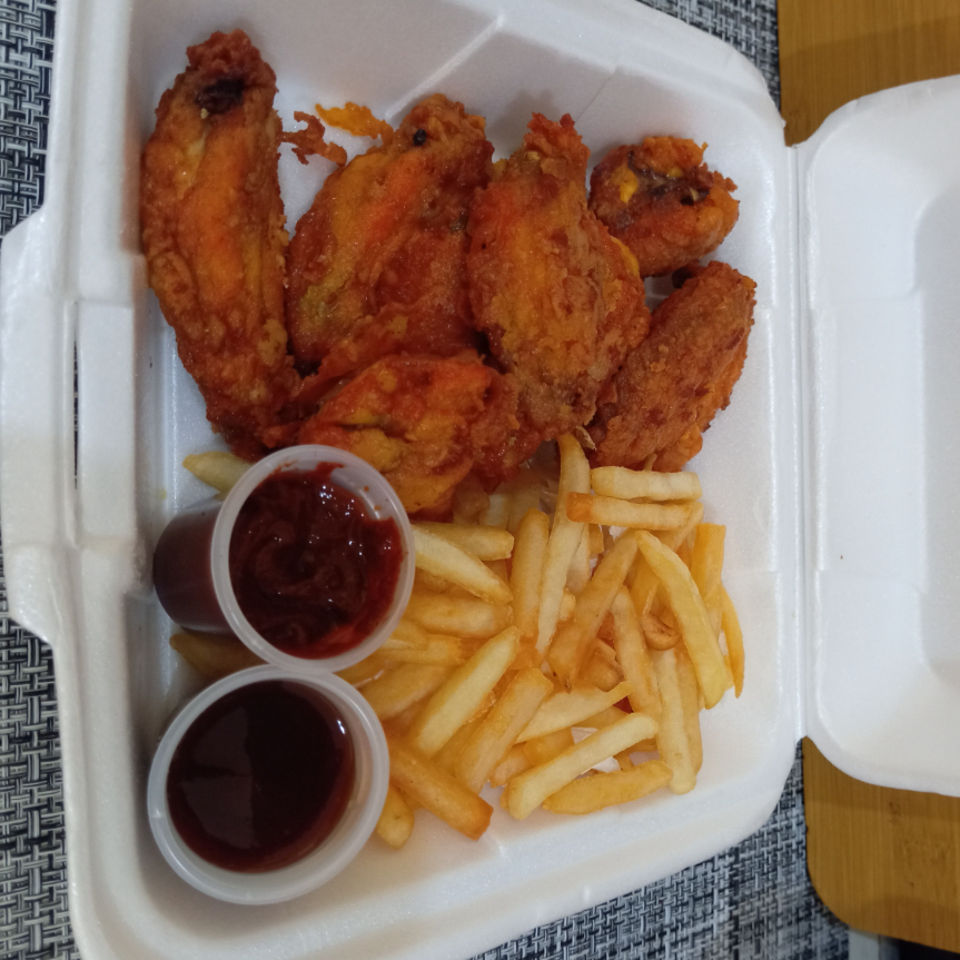 10 pzas de alitas Barbiquiu acompañadas de papas a la francesa