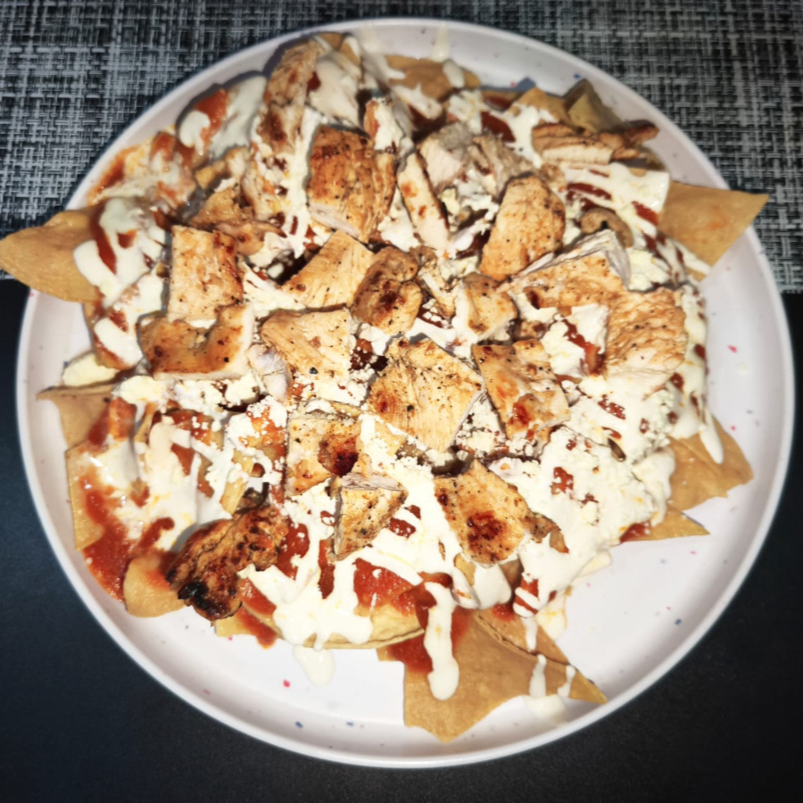 Chilaquiles Rojos acompañados de pollo a la plancha