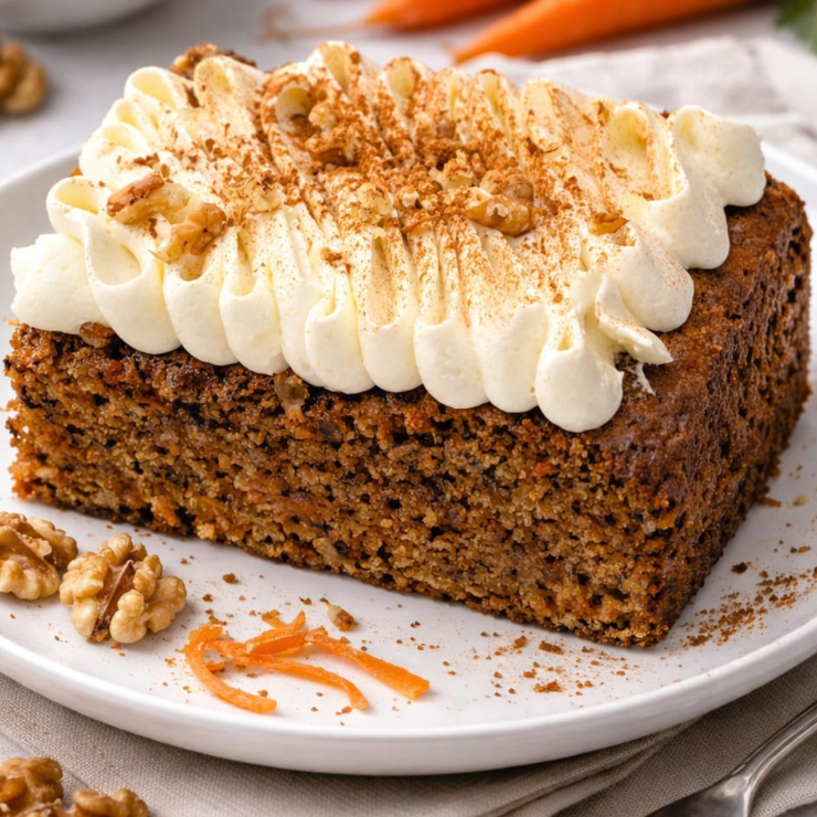 Pan de zanahoria, con nuez y canela, con topping de betún de queso crema