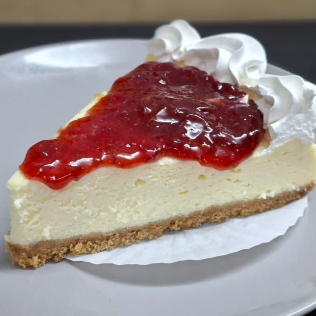 Cheesecake cremoso con base de galleta oreo topping de dulce de leche, nuez y chispas de chocolate.