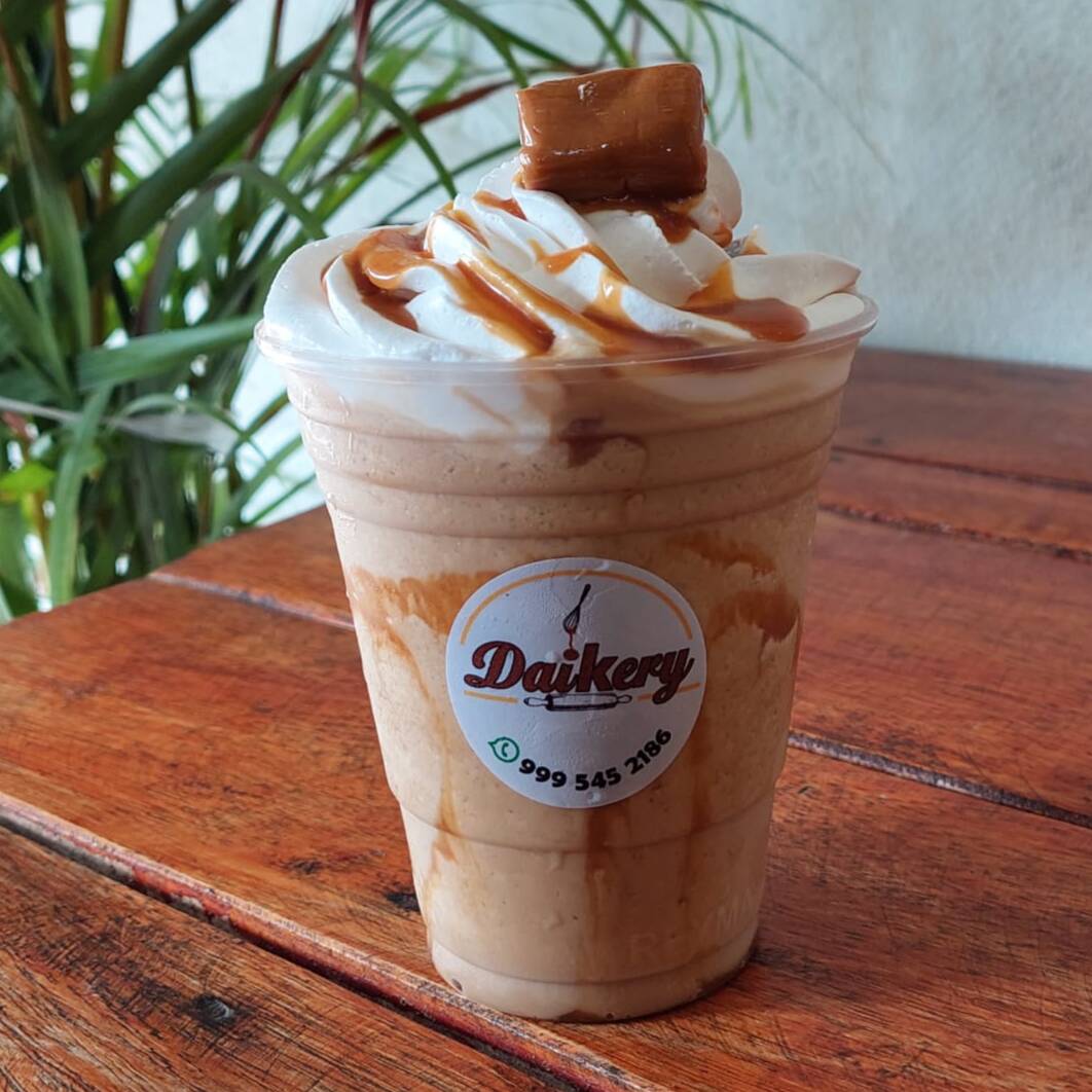 Frappé con caramelo de la casa, con leche deslactosada.