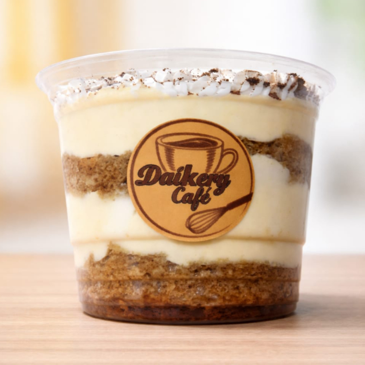 Cremoso postre de origen Italiano a base de un mousse de queso mascarpone y bizcocho humedecido en café Expresso y un toque de licor de café en presentación de 8oz