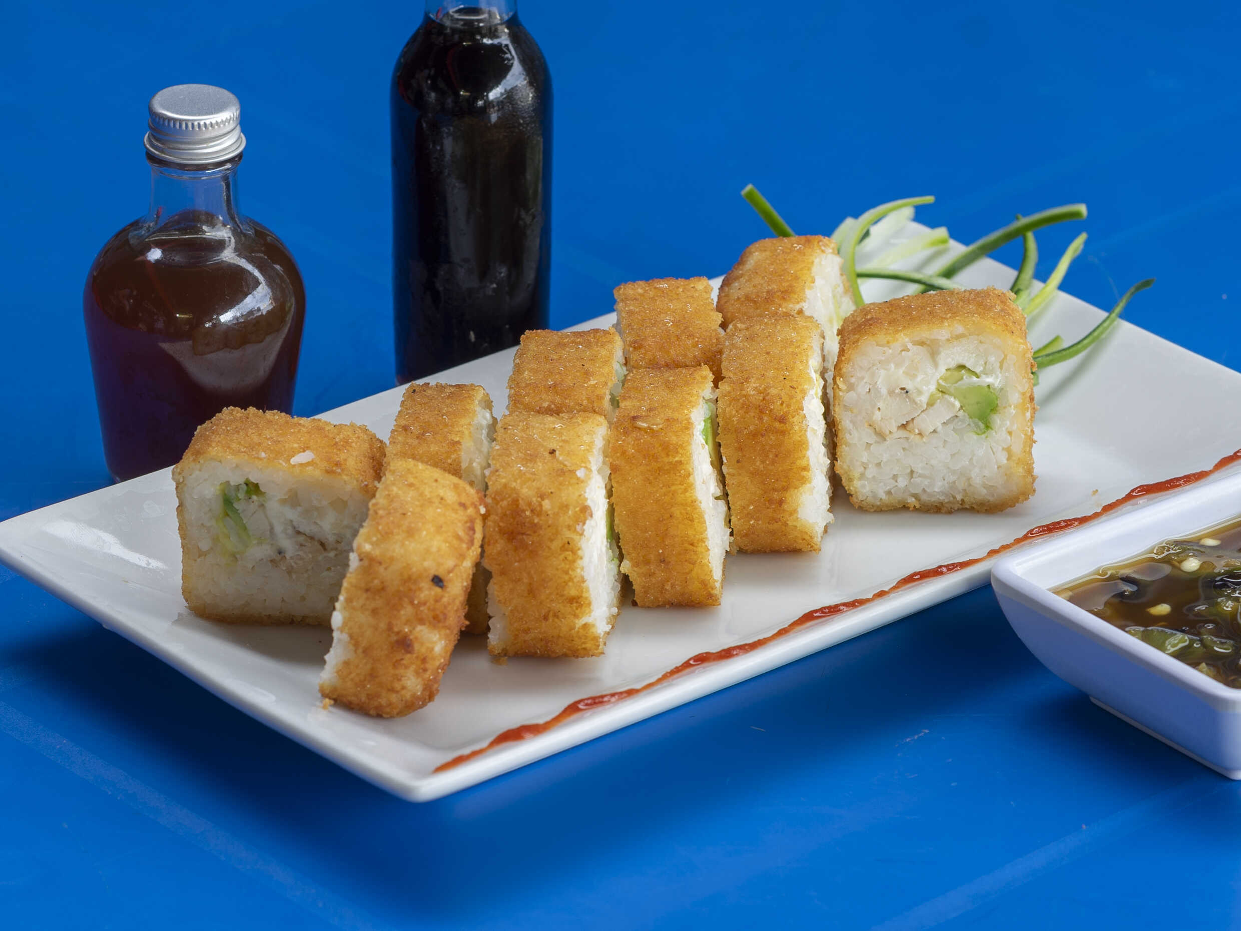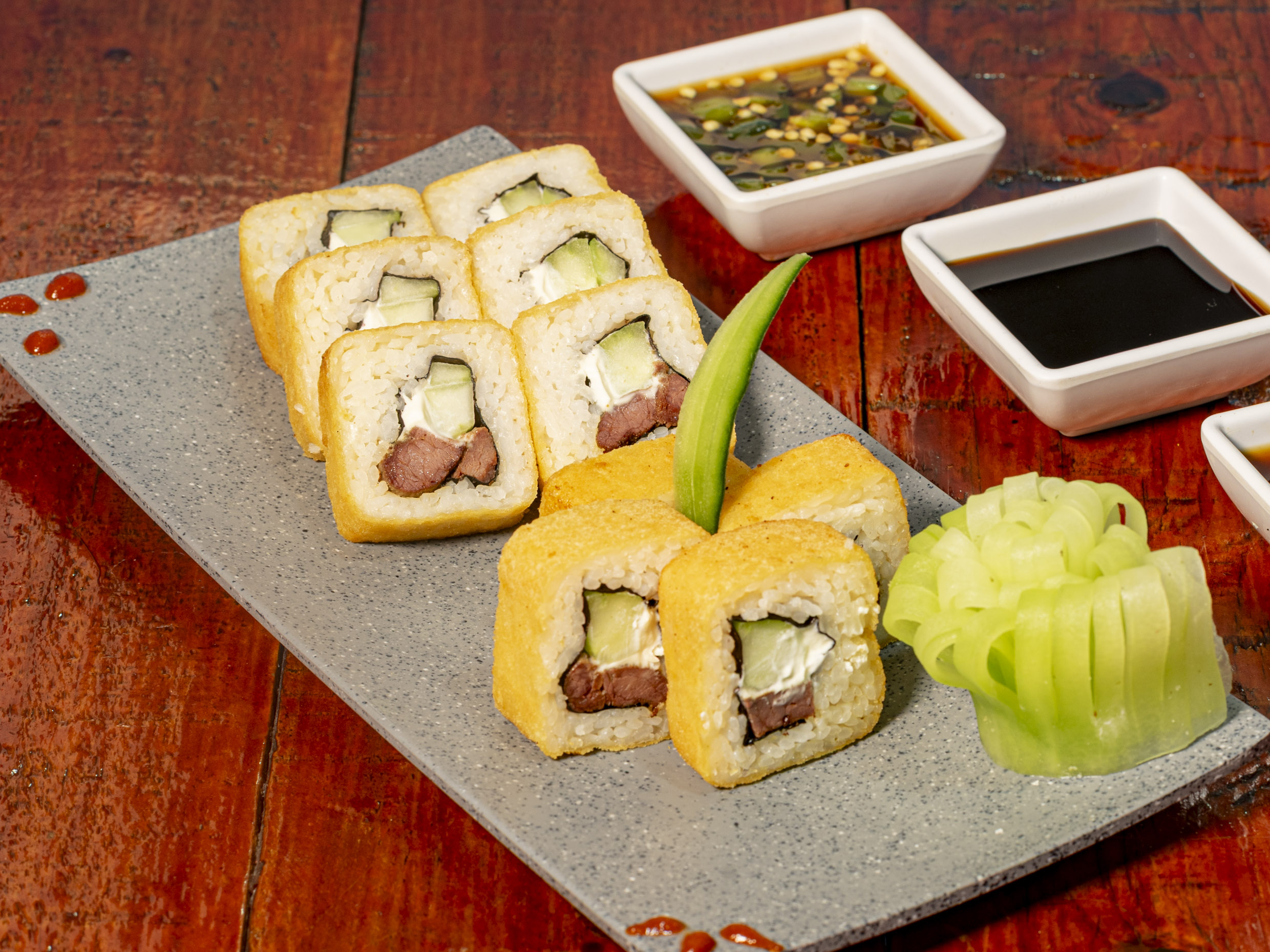 PD: Alga, Philadelphia, pepino y arrachera PF: Empanizado