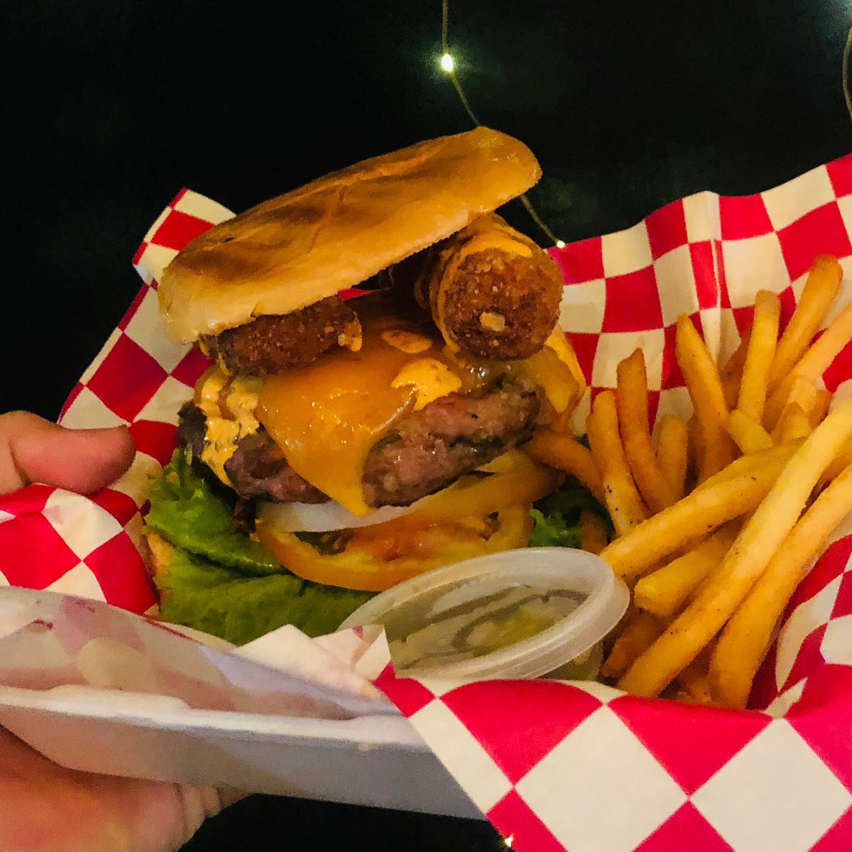 Una hamburguesa con queso extra nunca pasará desapercibida, y está con los dedos de queso y el adzo de la casa no será la excepción, note quedes con la ganas de gozarla