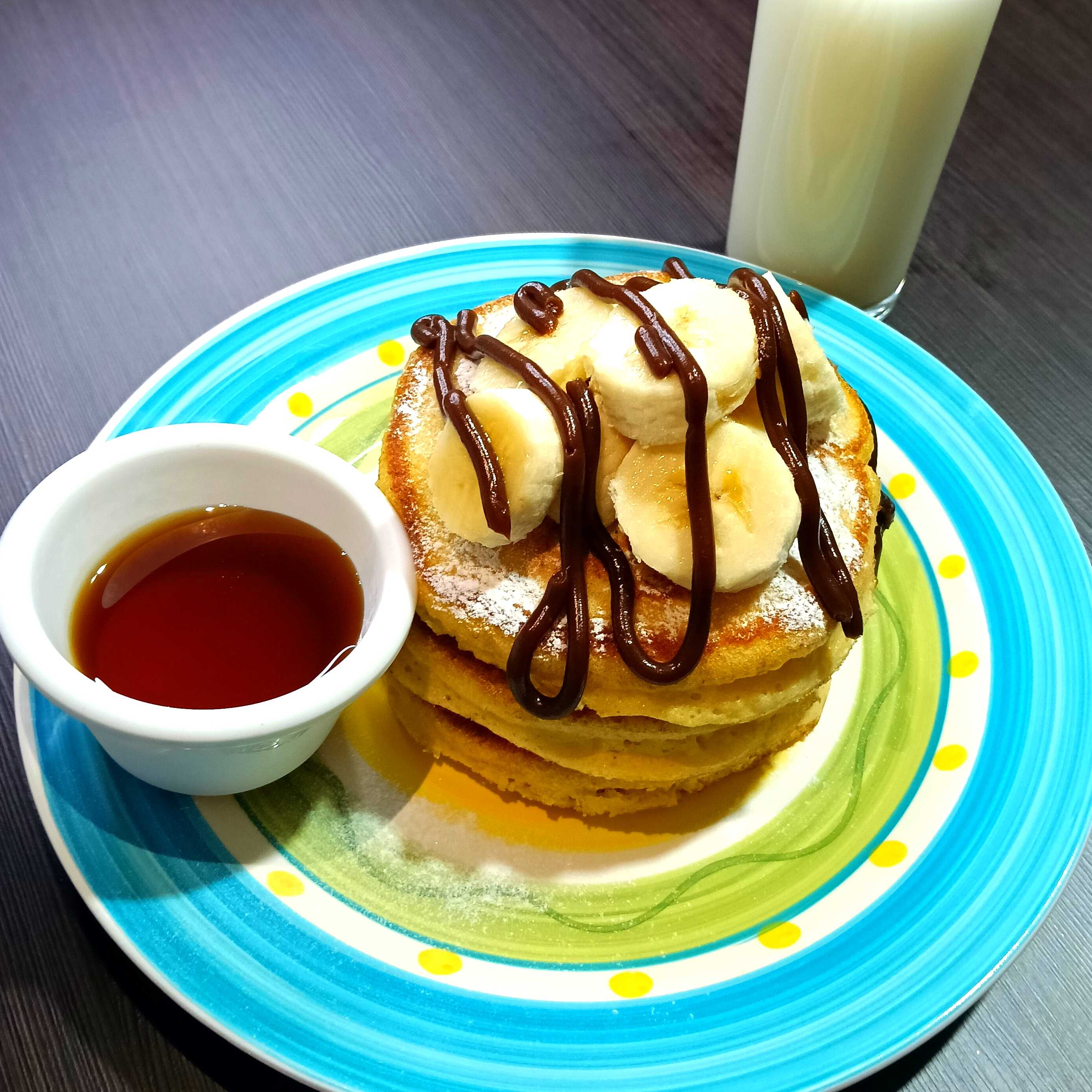 Hot cakes (Acompañado con plátano, miel,chocolate)