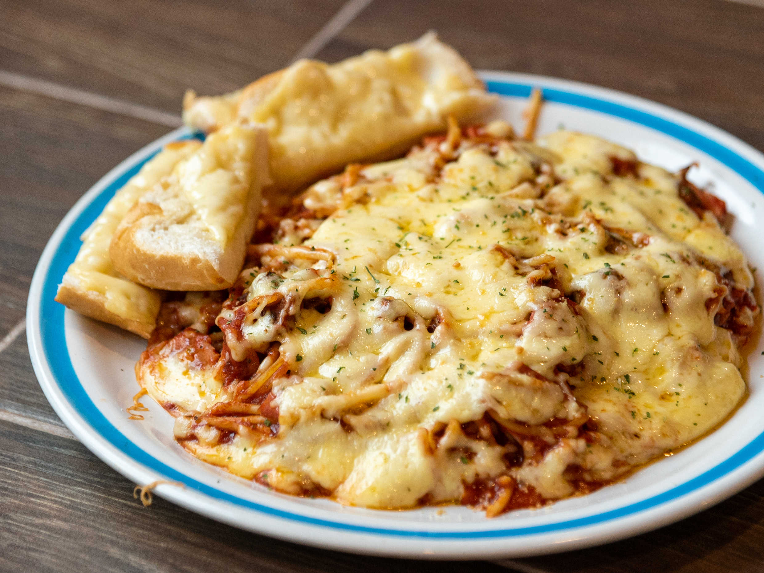 Salsa italiana, champiñón, tocino, salchicha de pavo, queso y delicioso pan de ajo.