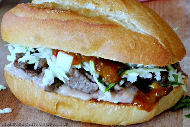 Pan bolillo, frijol, romanita, cebolla, tomate y aguacate. Se envia en una pieza